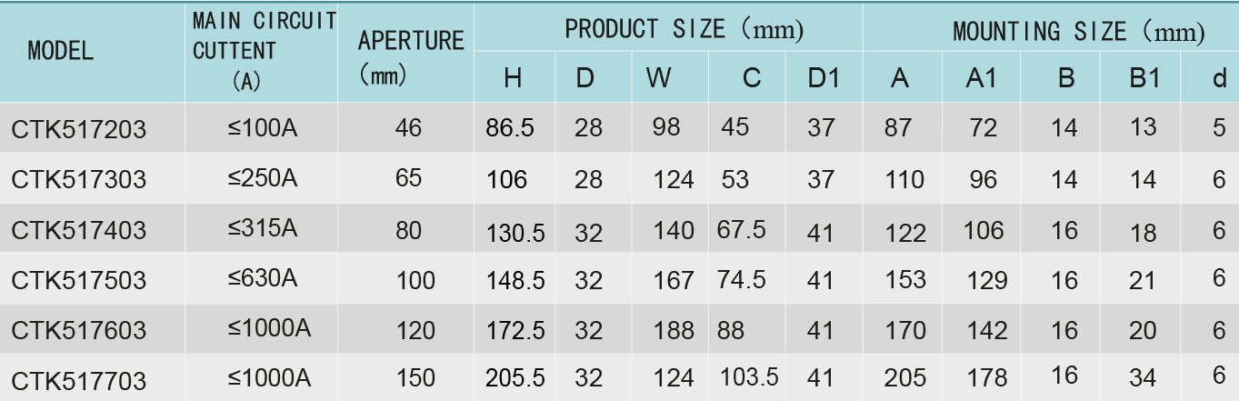 CTK517 series open type residual current transformer is designed and produced according to the current market, which is increasingly appearing, and the later installed relay protection equipment, electrical fire monitoring system and other methods need to be installed without power outage. Since the existing distribution circuit cannot be changed, only the open type product can achieve the purpose of installation. With the expansion of applications, some construction parties are also using open type installation products to reduce installation costs.The product can be output by terminal or direct wire output, and the wire length is specified as needed.