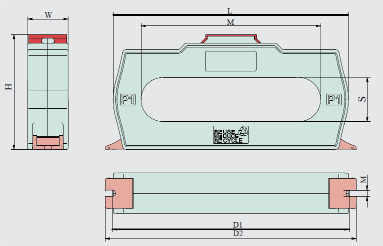較大規(guī)格的產(chǎn)品安裝在銅排回路上時(shí),由于產(chǎn)品重量比較重,建議采用平裝支架的方式安裝,以增加其安裝的穩(wěn)定性。且為了得到更好的監(jiān)測結(jié)果,盡可能的使母排位于互感器矩形穿心孔的中間位置,而不宜使母排太靠近產(chǎn)品的直邊內(nèi)壁側(cè)。