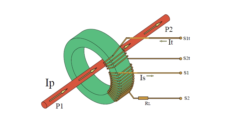 本系列產(chǎn)品的接線端子分別為S1、S2、S1t、S2t共計(jì)四個(gè)端子。標(biāo)準(zhǔn)產(chǎn)品S1、S2為互感器的二次輸出端子,且S1和P1側(cè)同名、S2和P2側(cè)同名;根據(jù)需要可以增加一個(gè)實(shí)驗(yàn)繞組,實(shí)驗(yàn)繞組的輸入端為S1t、S2t、且S1t和P1側(cè)同名、S2t和P2側(cè)同名。試驗(yàn)繞組一般的匝數(shù)不超過50匝,可以根據(jù)需要繞制。