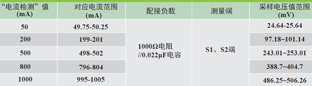 剩余電流互感器通過相應(yīng)正弦交流電流時(shí),其輸出采樣值電壓應(yīng)滿足下表中的要求。
