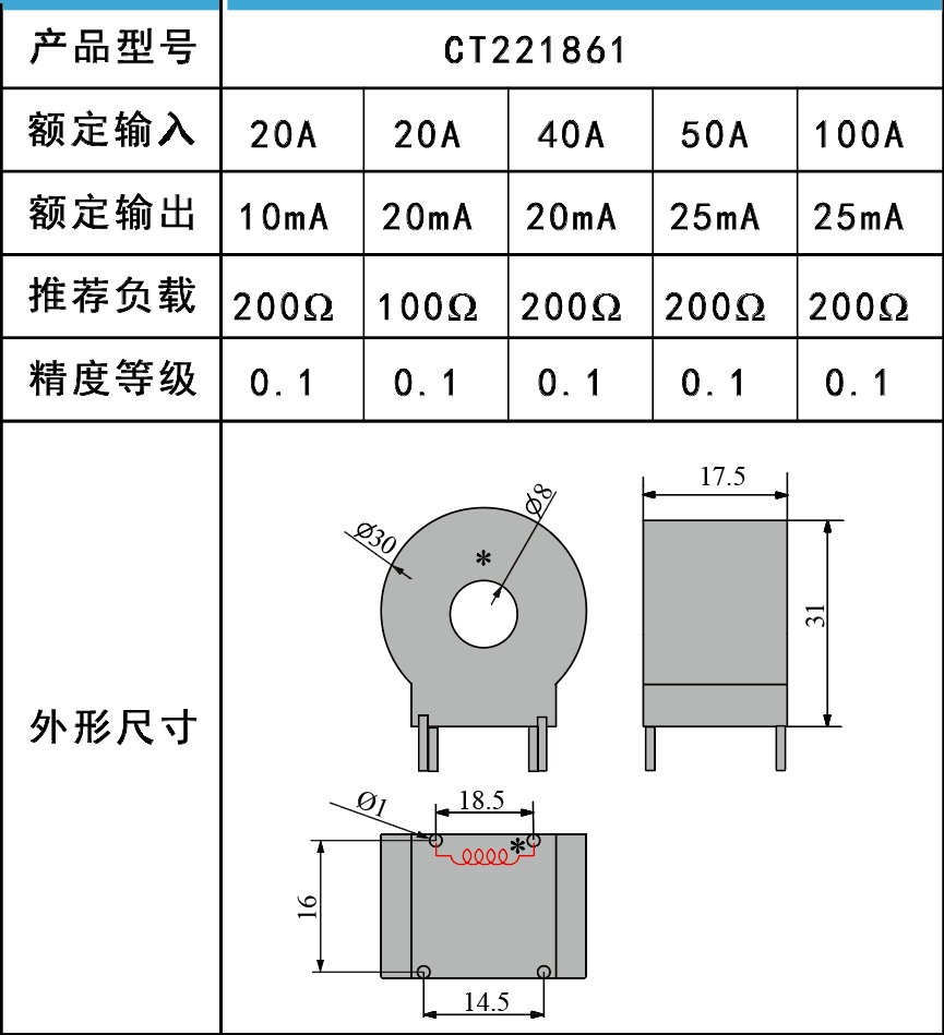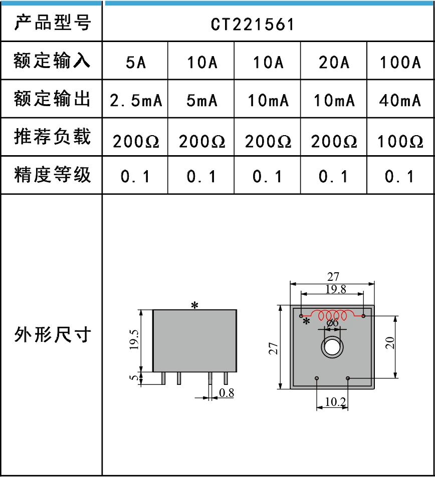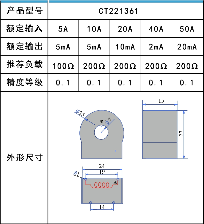 微型電流互感器用于將交流電流信號按比例變換為更低電平的交流電流或電壓信號。